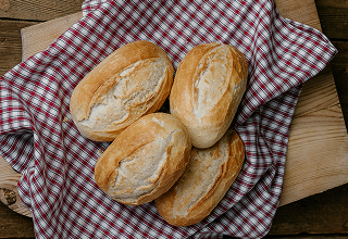 Classic German Sunday rolls. Crisp golden crust with a soft, airy wheat sourdough crumb.
